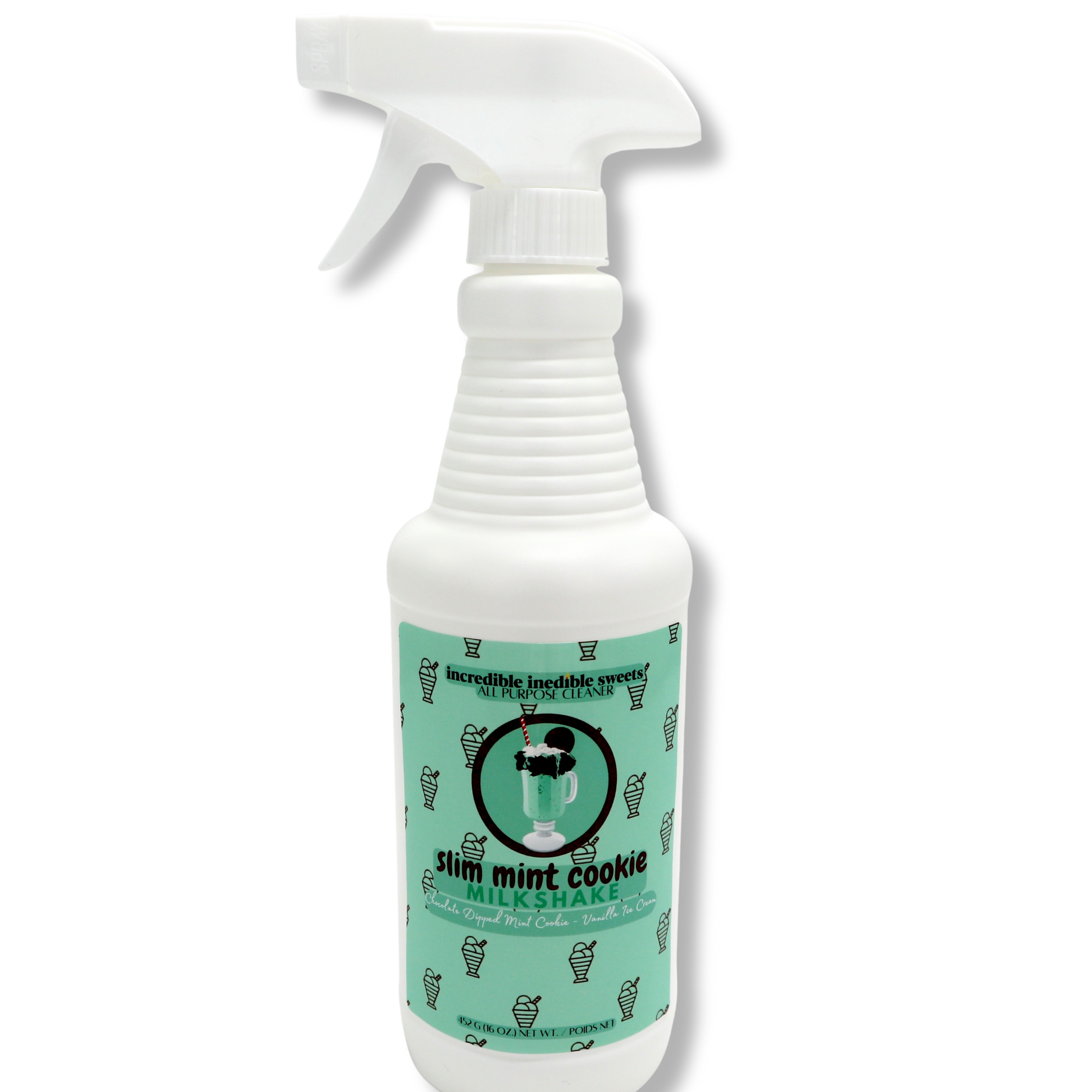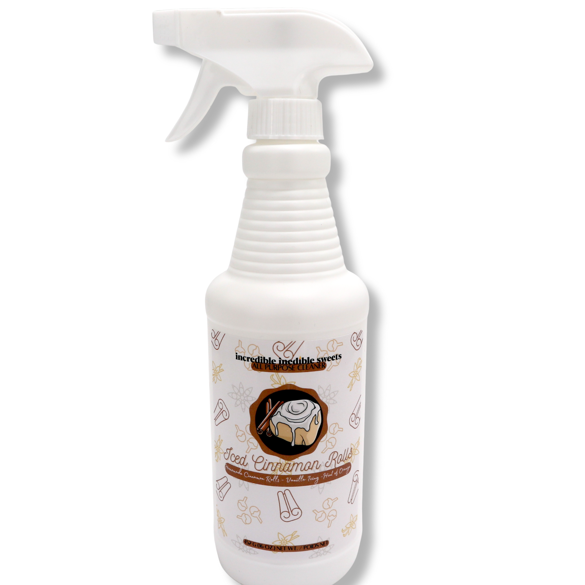 This all-purpose cleaner is inspired by decadent desserts, offering a richly scented experience. It's perfect for cleaning all non-porous surfaces. The 16 oz. bottle contains all-natural, non-toxic ingredients by incredible inedible sweets. Ideal for those who appreciate a unique, dessert-themed cleaning solution.