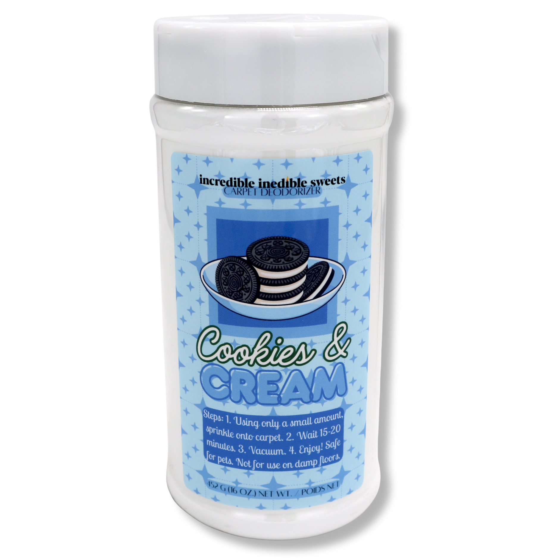 Transform your home with the Year Round Collection Carpet Deodorizers by incredible inedible sweets. These ultra concentrated gourmand scents offer a delightful way to freshen your carpets. Simply sprinkle, wait, and vacuum for days of dessert scented goodness! Available in 16 Oz. bottles, these deodorizers are perfect for any space.