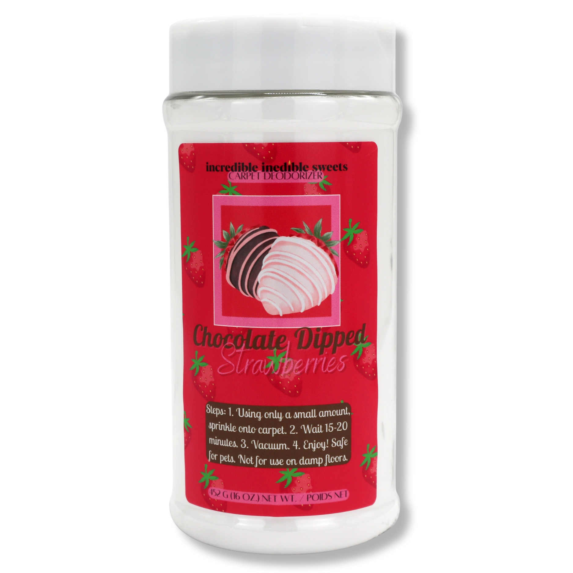 Transform your home with the Year Round Collection Carpet Deodorizers by incredible inedible sweets. These ultra concentrated gourmand scents offer a delightful way to freshen your carpets. Simply sprinkle, wait, and vacuum for days of dessert scented goodness! Available in 16 ounce bottles, these deodorizers are perfect for any space.